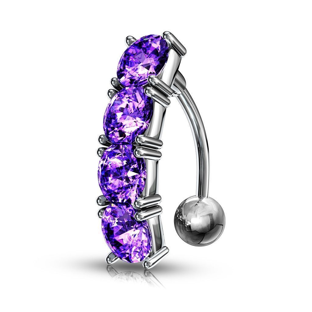 Piercingový šperk určený pro piercing pupíku. S ozdobou z kvalitní bižuterie.