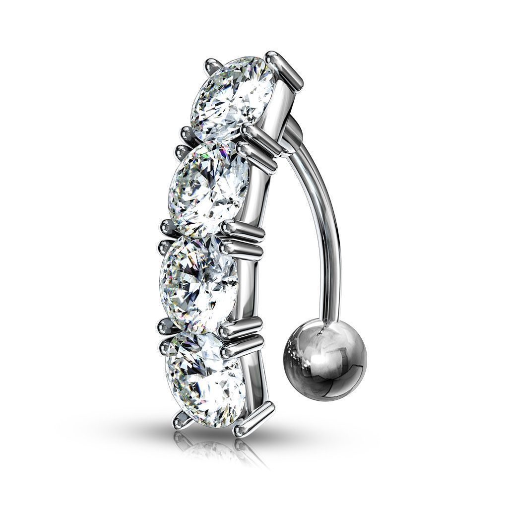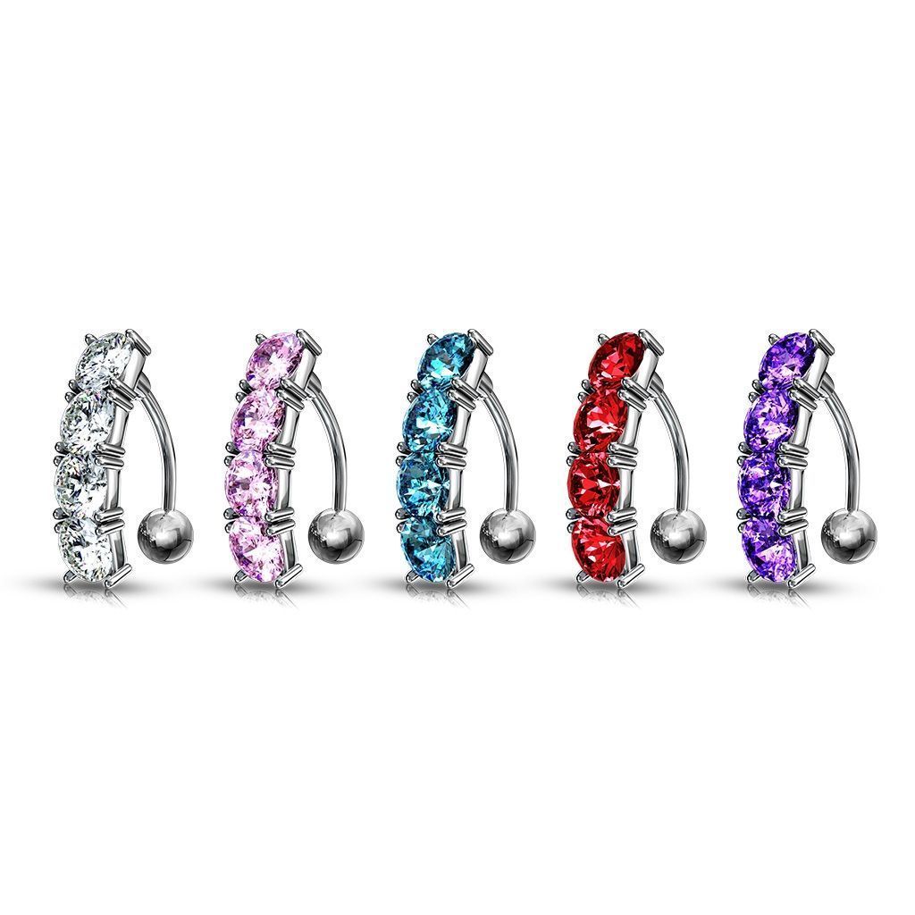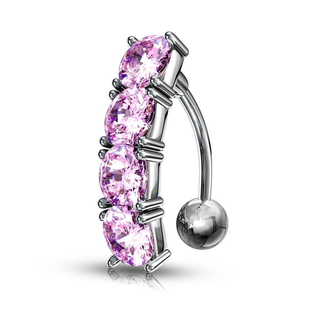 Piercingový šperk určený pro piercing pupíku. S ozdobou z kvalitní bižuterie.