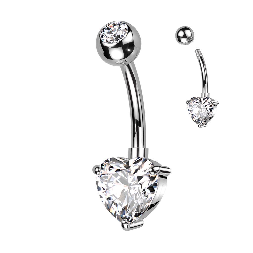 Piercing do pupíku se zirkonem ve tvaru srdíčka