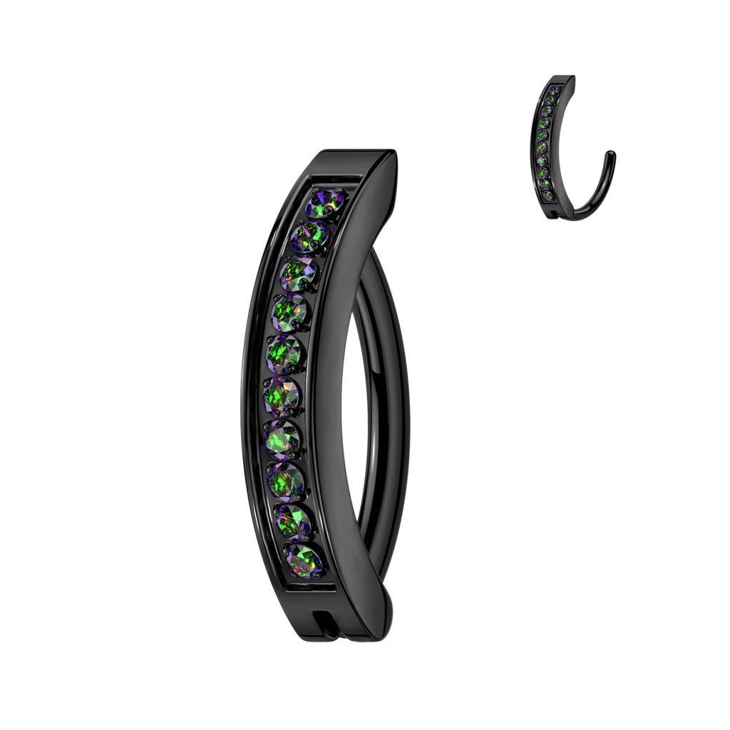 Piercing do pupíku jednoduchého, ale velmi elegantního vzhledu dekorovaný zirkony.