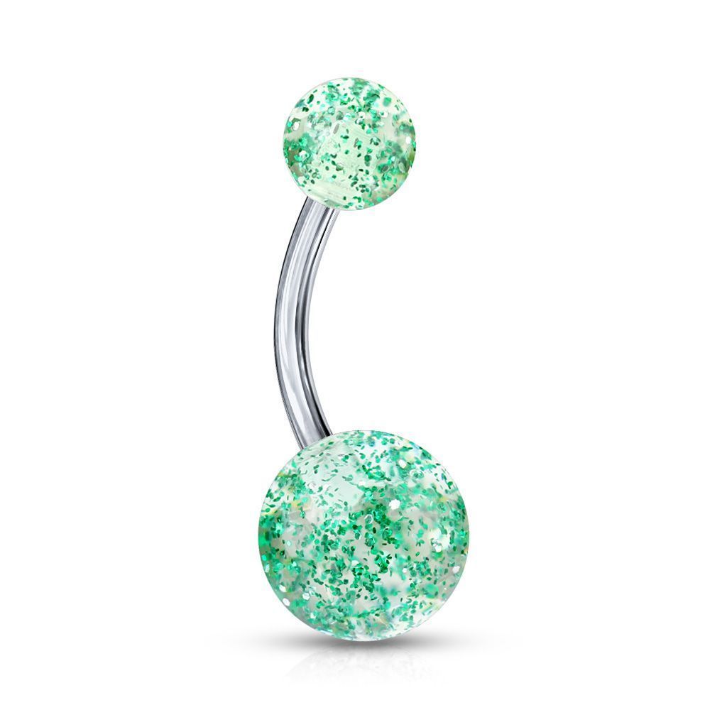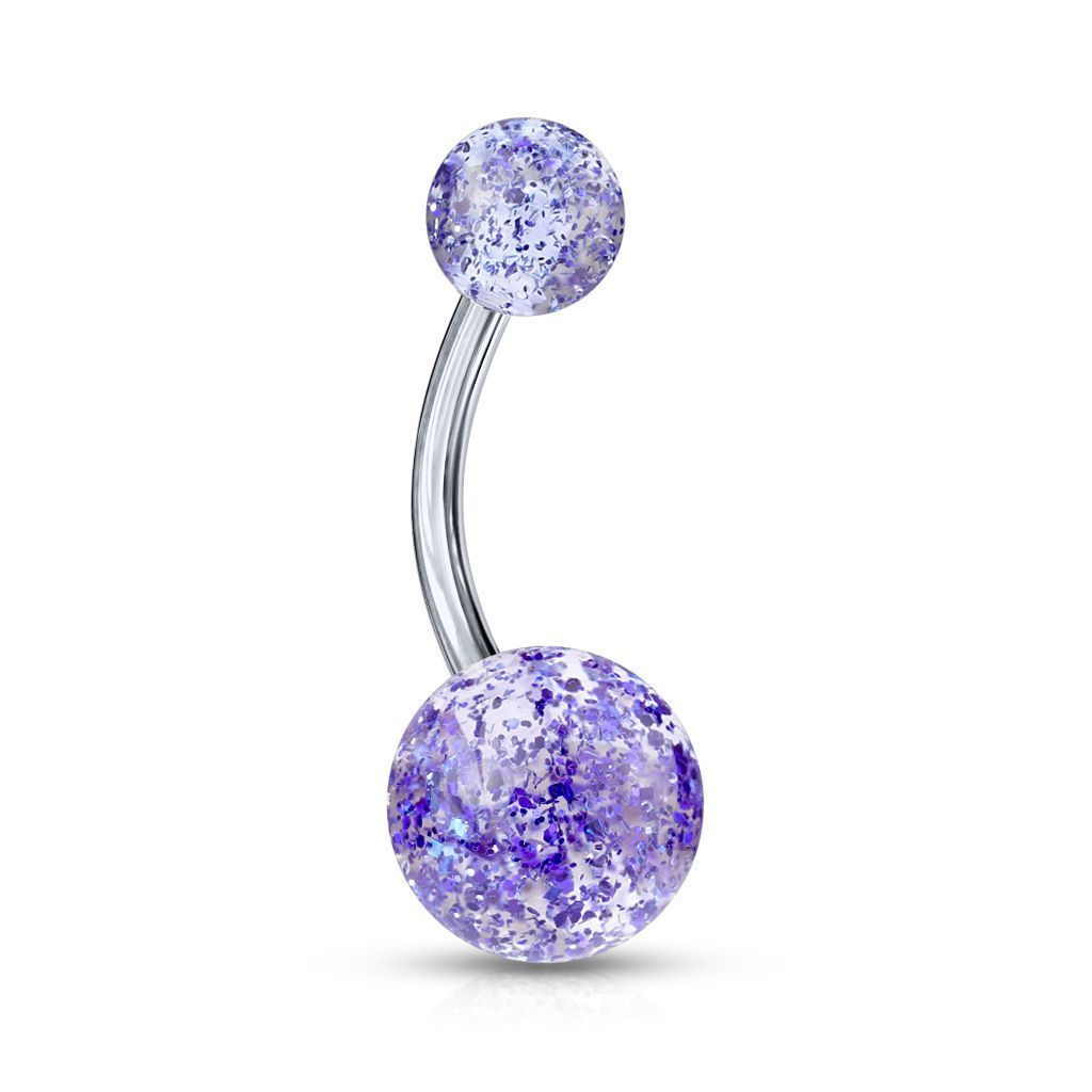 Titanový piercing do pupíku - banánek s akrylátovými třpytkovými kuličkami.