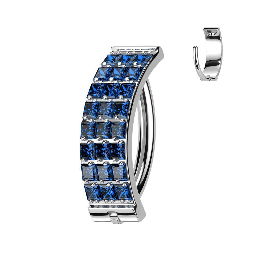 Piercing do pupíku se štítem netradičního vzhledu bohatě zdobený zirkony.