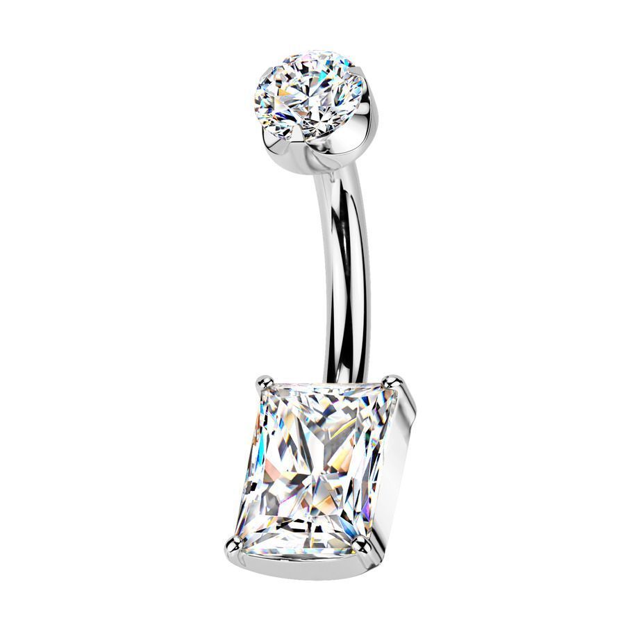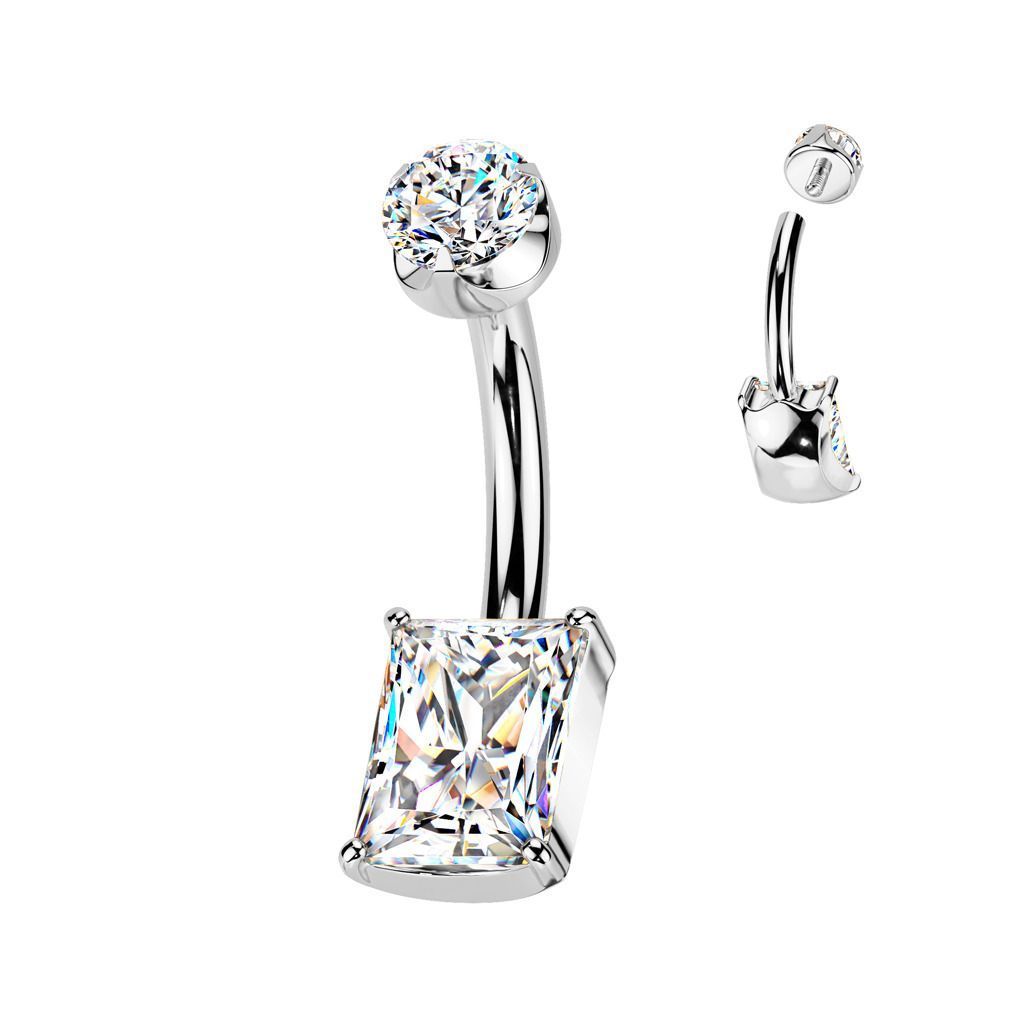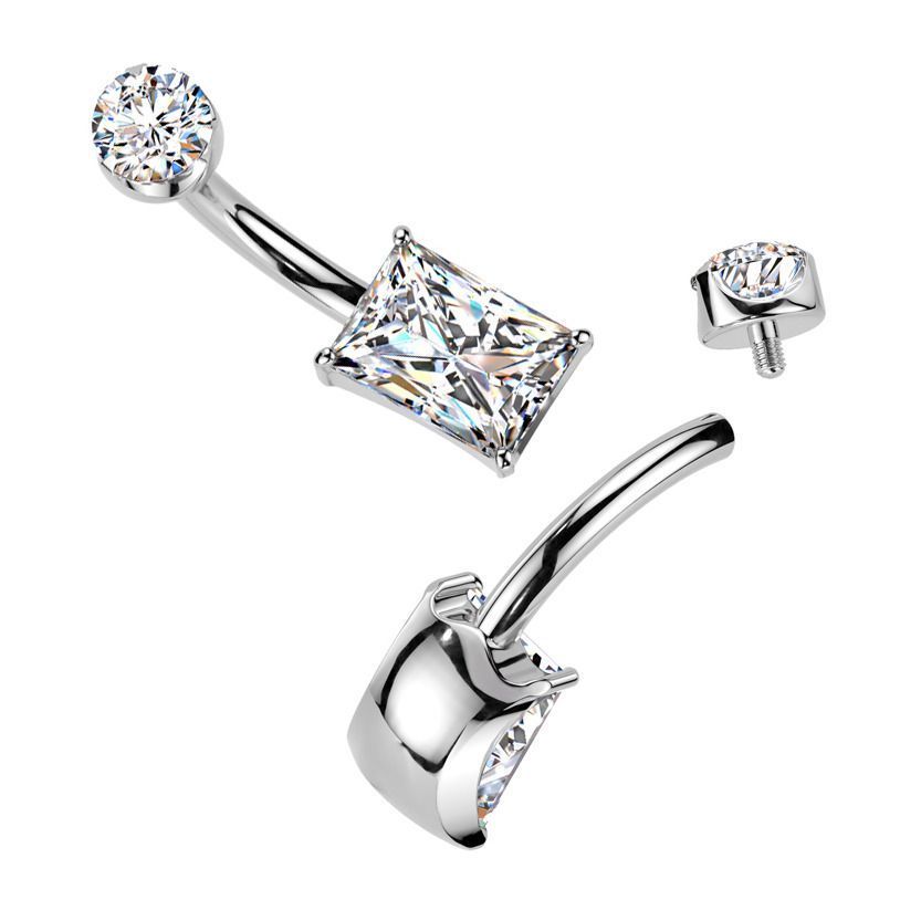 Titanový piercing do pupíku s oválným zirkonem