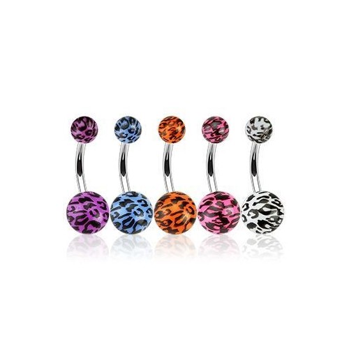 Piercing banánek do pupíku, chirurgická ocel s akrylátovými UV kuličkami, které vyniknou pod UV světlem. Gepard, leopard...