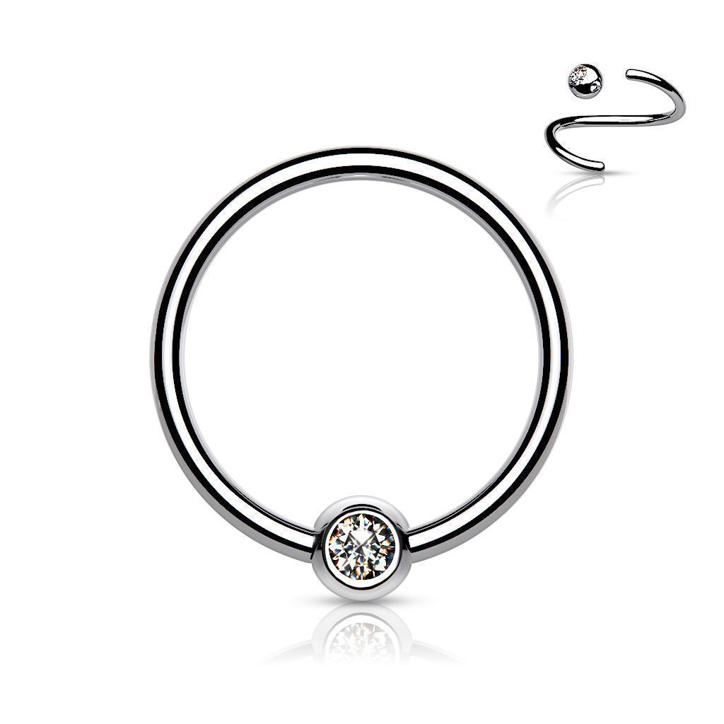 Piercing - kruh titan se zirkonem (1,6 x 8 x 3 mm)