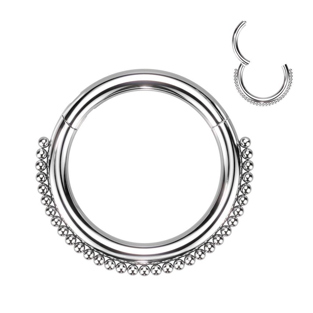 Ozdobný piercing - segment kruh otevírací. Kroužek otevírací na praktický pantík. Segment kruh zdobený řadou droboučkých kuliček.