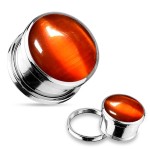 Šroubovací plug z lesklé chirurgické oceli osazený kamenem Cats Eye.