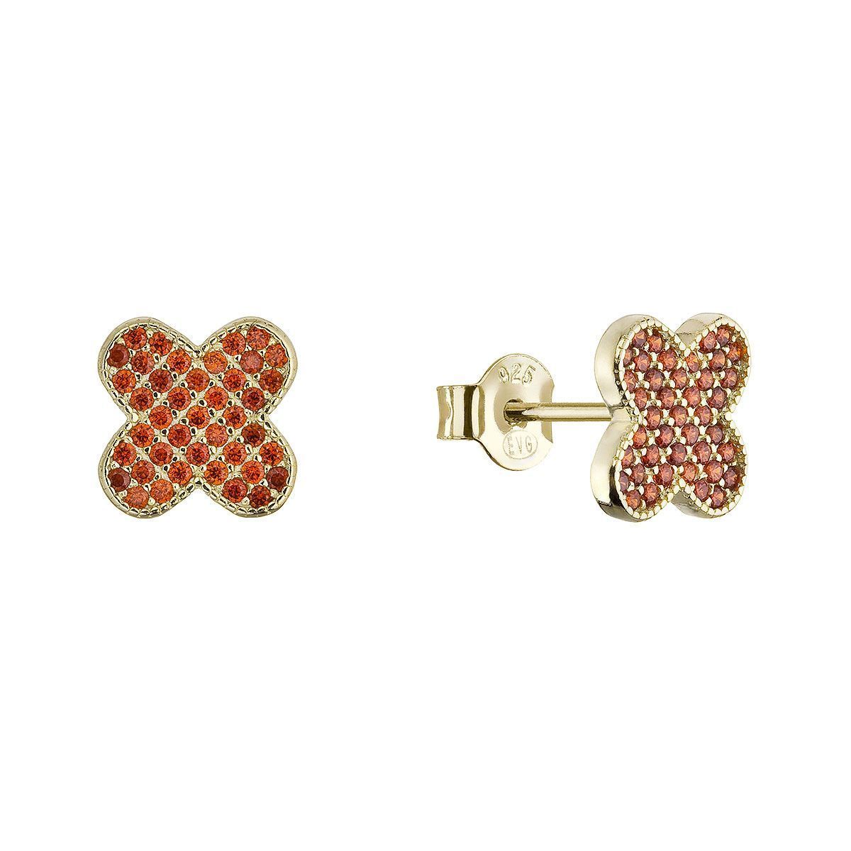 Ocelové šperky a piercing (20340) > Stříbrné šperky (7075) > Pozlacené náušnice čtyřlístky 11763.3 oranžové
