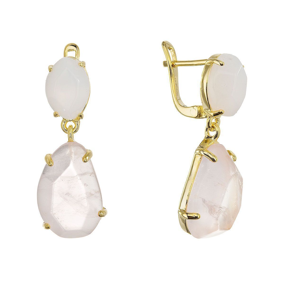 Pozlacené náušnice s růženínem a chalcedonem 11740.3