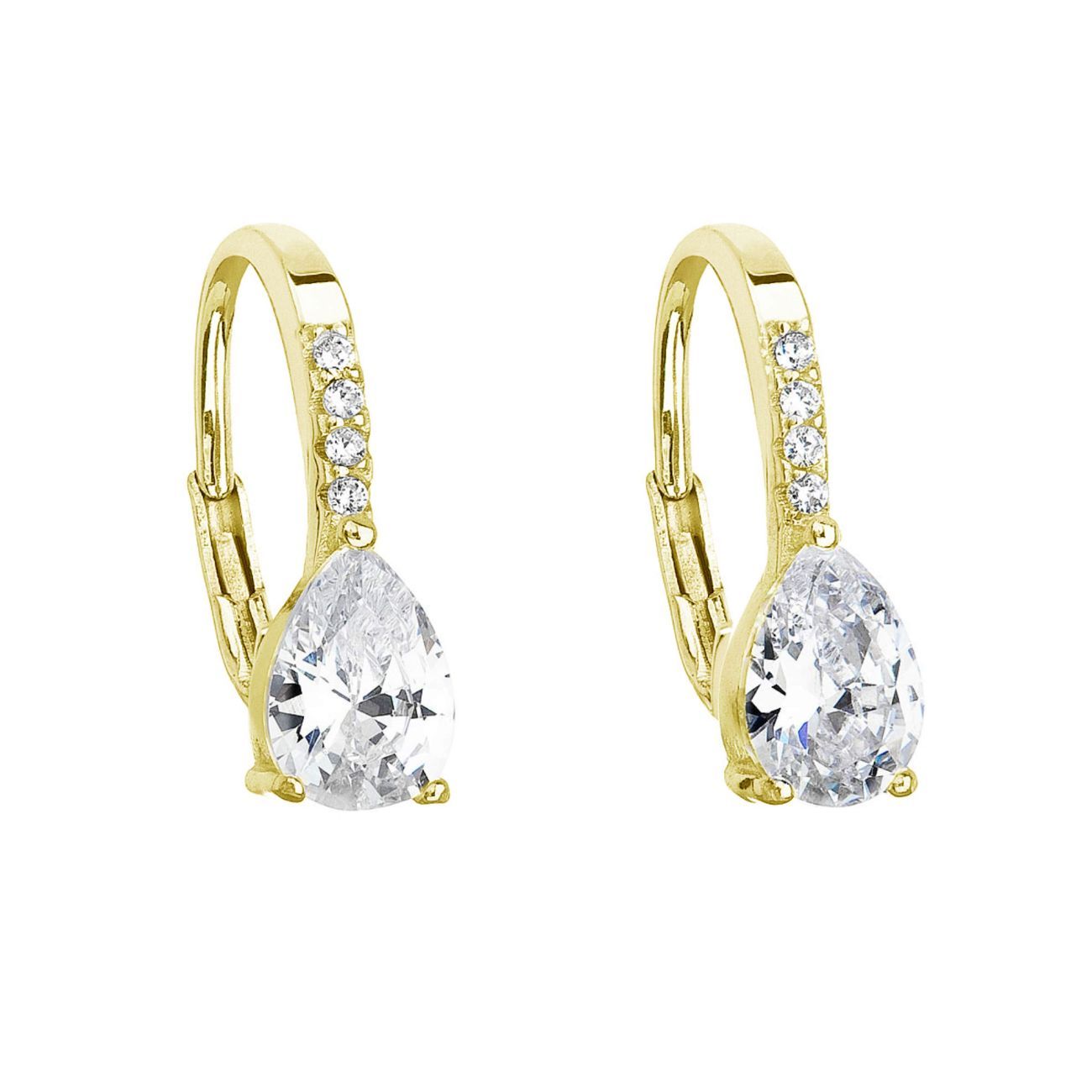 Ocelové šperky a piercing (17578) > Stříbrné šperky (5512) > Stříbrné náušnice (2153) > Stříbrné náušnice na klapku (482) > Pozlacené náušnice visací se zirkonem bílá slza 11206.1