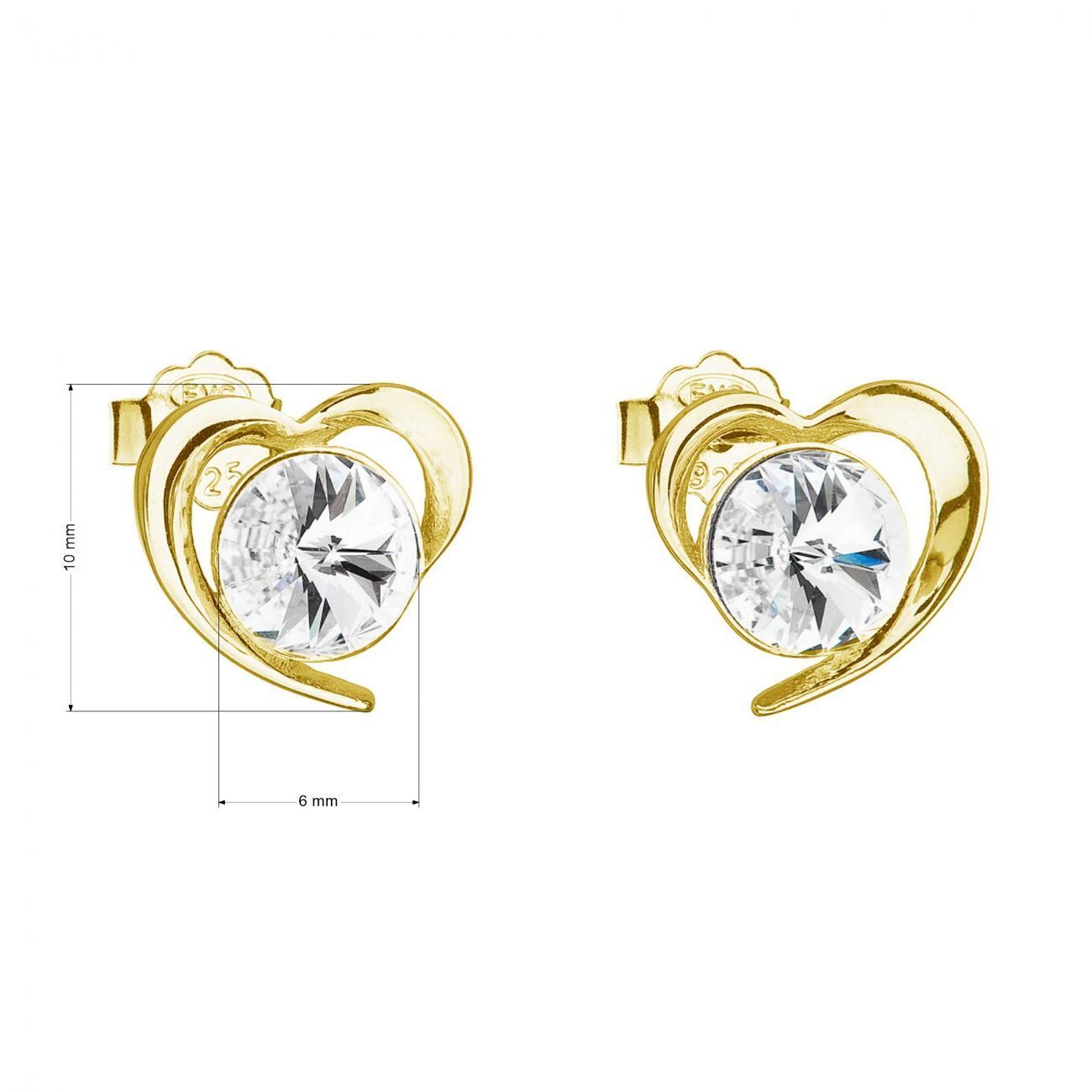 Parametry pozlacených stříbrných náušnic pecek s krystaly Swarovski bílé srdce 31259.1