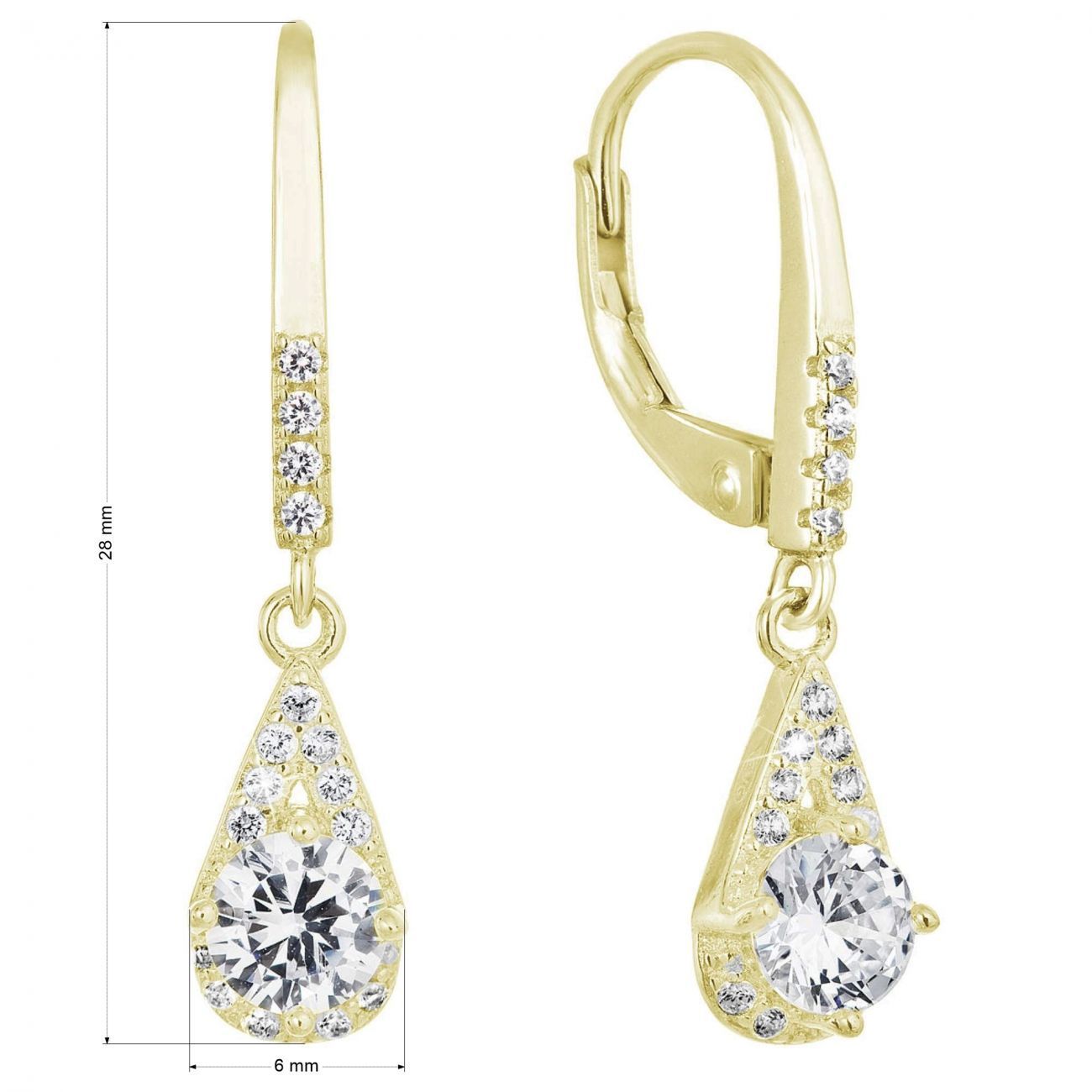 Ocelové šperky a piercing (14075) > Stříbrné šperky (2964) > Stříbrné náušnice (1101) > Stříbrné náušnice na klapku (338) > Pozlacené stříbrné náušnice visací se zirkony bílá slza 11305.1