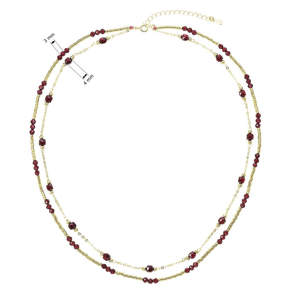 Okouzlující jemný dvouřadý náhrdelník s drobnými přírodními kamínky granáty působí lehce a elegantně.