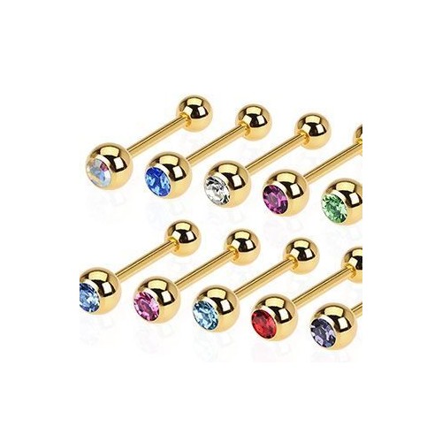 Ocelové šperky a piercing (20326) > Piercing (3879) > Piercing do jazyka (171) > Pozlacený piercing do jazyku - kamínek (duhová)