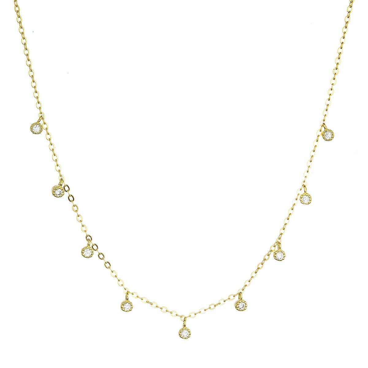 Pozlacený stříbrný náhrdelník s 9 malými kulatými zirkonky 12056.1 crystal