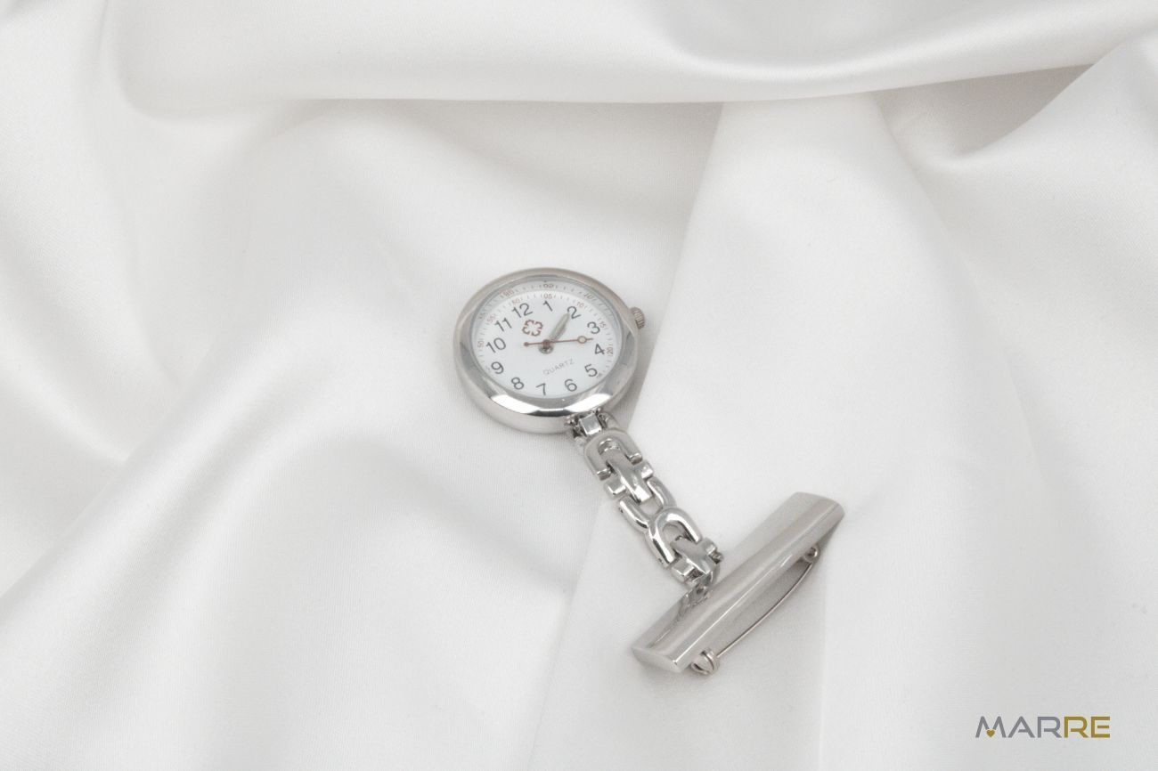 Připínací hodinky pro zdravotní sestry lesklý chrom