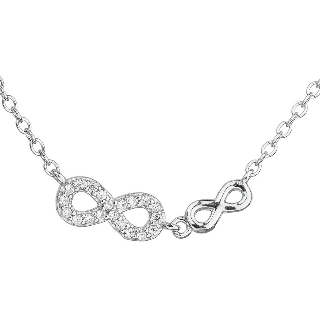 Stříbrný náhrdelník je vyroben ze stříbra o ryzosti 925/1000 s povrchovou úpravou rhodiem, která brání zčernání, zežloutnutí a poškrábání šperku. Náhrdelník ve tvaru nekonečna - ležaté osmičky je osazen čirými zirkony. Šperk neobsahuje nikl, a tak je vhodný pro citlivé osoby i pro alergiky.