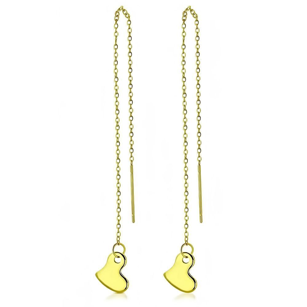 Ocelové šperky a piercing (16462) > Ocelové šperky (4142) > Ocelové náušnice (1192) > Visací náušnice (254) > Provlékací zlacené ocelové náušnice se srdíčky