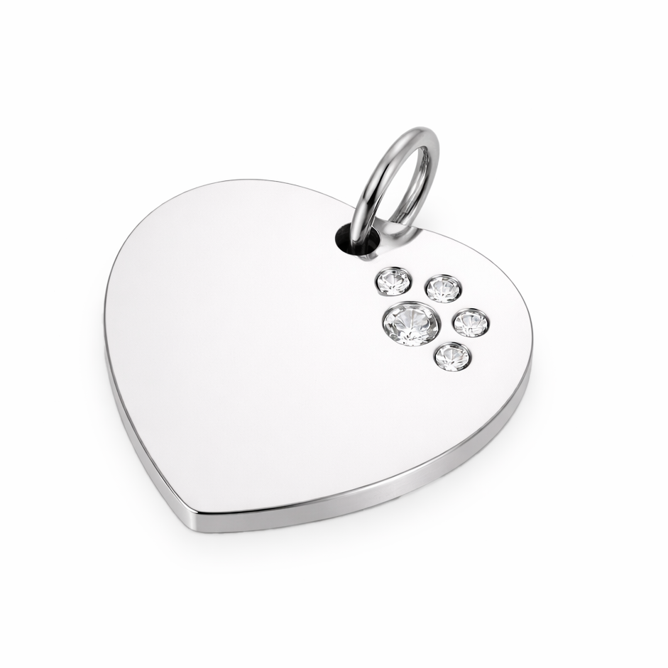 Luxusní přívěsek na obojek z chirurgické oceli - srdce s tlapkou se zirkony