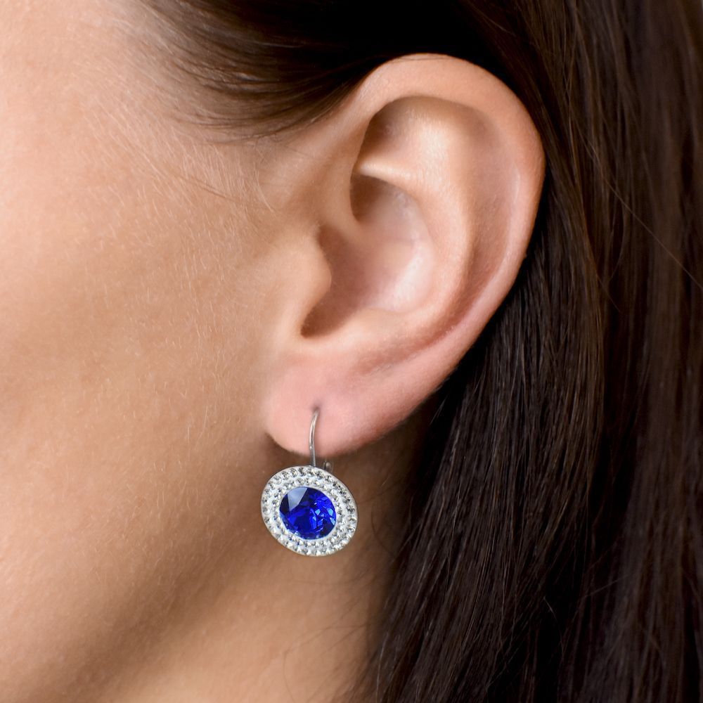 Sada šperků 39107.3 obsahuje kulaté visací náušnice a přívěšek ve stejné podobě. Šperky jsou zdobeny velkým kulatým Swarovski krystalem v modré barvě, který je navíc lemován dvěma řadami menších bílých krystalků Swarovski. Šperky ze soupravy 39107.3 jsou vyrobeny ze stříbra ryzosti 925/1000 včetně povrchové úpravy rhodiem. Rhodium chrání šperk proti zčernání, zežloutnutí i poškrábání. Náušnice mají zapínání na klapku. Jelikož šperky neobsahuji žádný přídavek niklu, mohou je bez obav nosit i alergici.