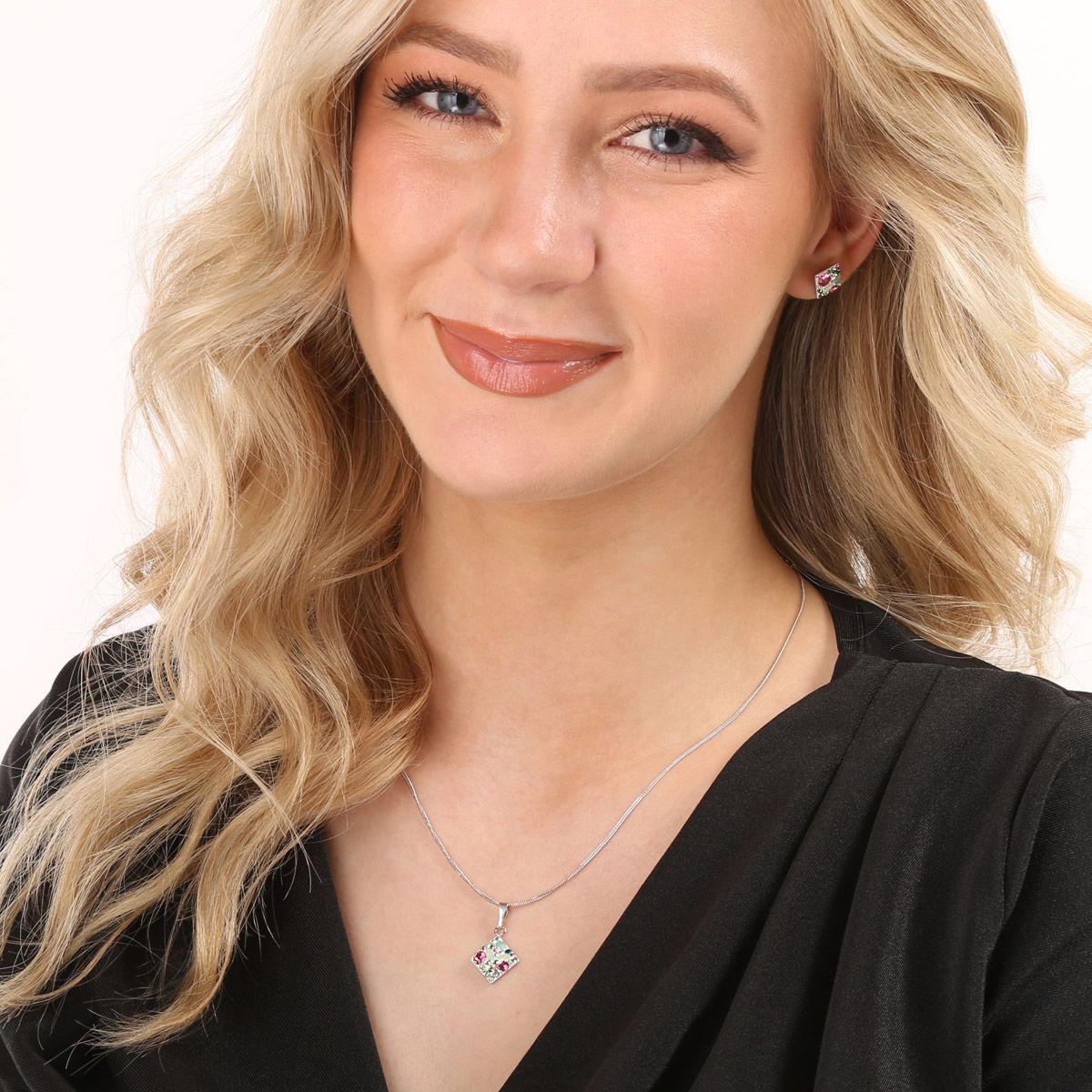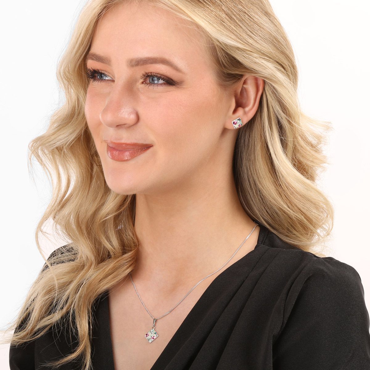 Sada šperků 39126.3 chrysolite obsahuje náušnice pecky a řetízek s přívěskem. Šperky jsou ve tvaru kosočtverce a jsou vyrobeny ze stříbra ryzosti 925/1000, které prošlo povrchovou úpravou rhodiem. Rhodium chrání šperk proti zčernání, zežloutnutí i poškrábání. Přívěšek i náušnice jsou bohatě zdobeny třpytivými Swarovski krystaly v různých barvách. Náušnice mají zapínání na balónek. Jelikož šperky neobsahuji žádný přídavek niklu, mohou je bez obav nosit i alergici.