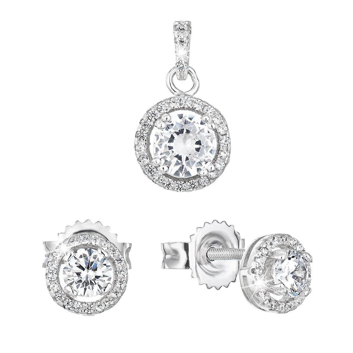 Sada šperků se zirkonem náušnice a přívěsek bílé kulaté 19026.1