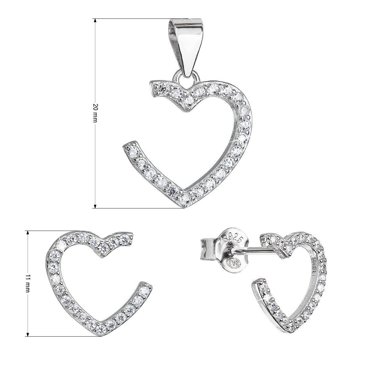 Sada šperků se zirkony náušnice a přívěsek bílá otevřená srdíčka 19032.1
