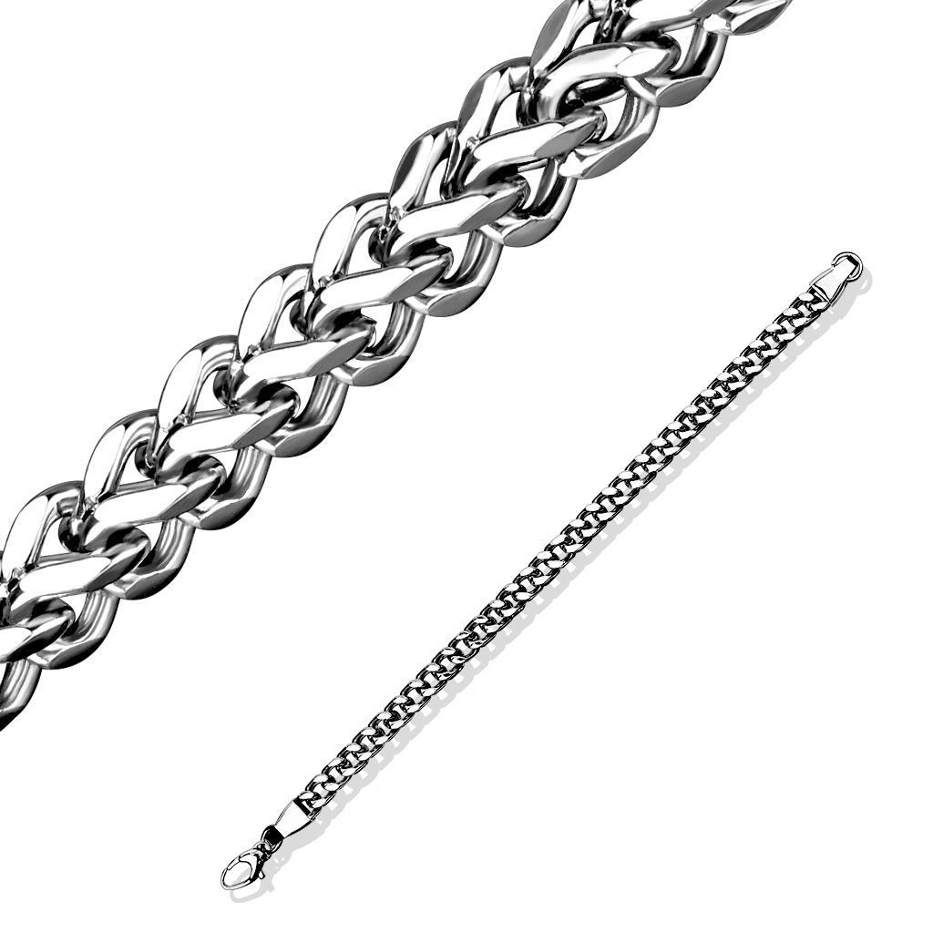 Souprava šperků masivní náramek a řetízek z chirurgické oceli. Královská hranatá vazba.