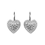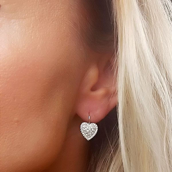 Stříbrné dámské náušnice - srdíčka osázená mikrozirkony čiré barvy.