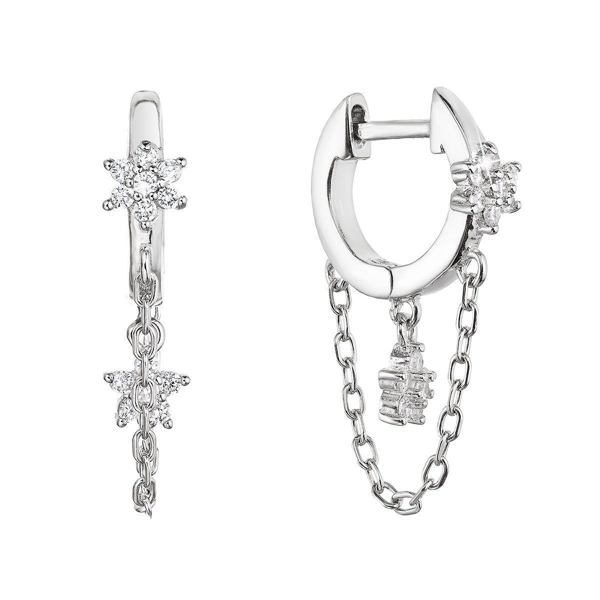 Ocelové šperky a piercing (16446) > Stříbrné šperky (4975) > Stříbrné náušnice (2183) > Stříbrné náušnice kroužky, kruhy (362) > Stříbrné náušnice kroužek a řetízek s kytičkami 11435.1 crystal