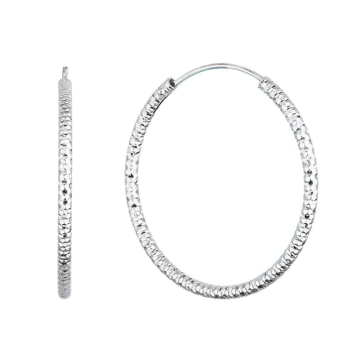 Stříbrné náušnice kruhy s ozdobným prolisováním 61006