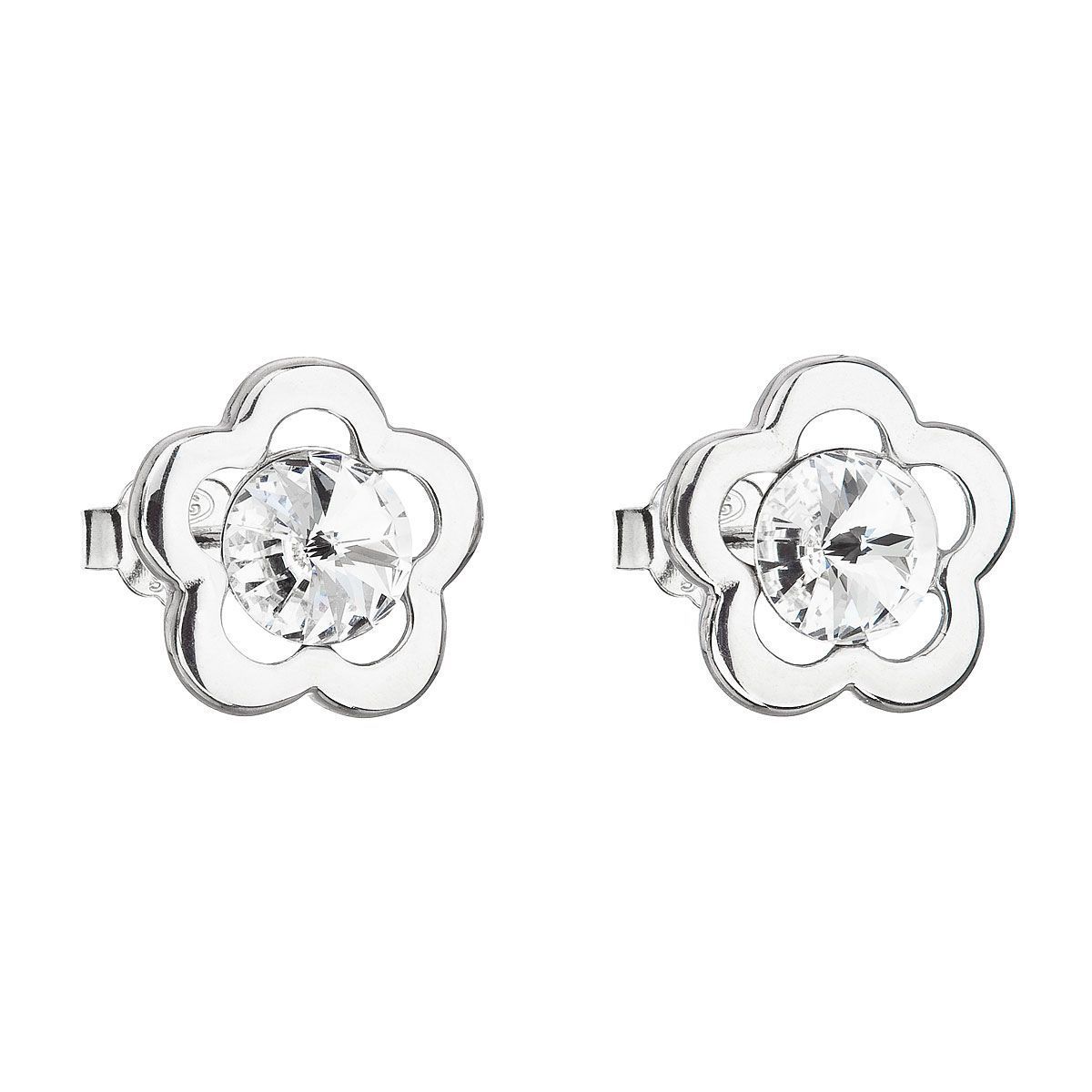 Stříbrné náušnice pecka s krystaly Swarovski bílá kytička 31254.1