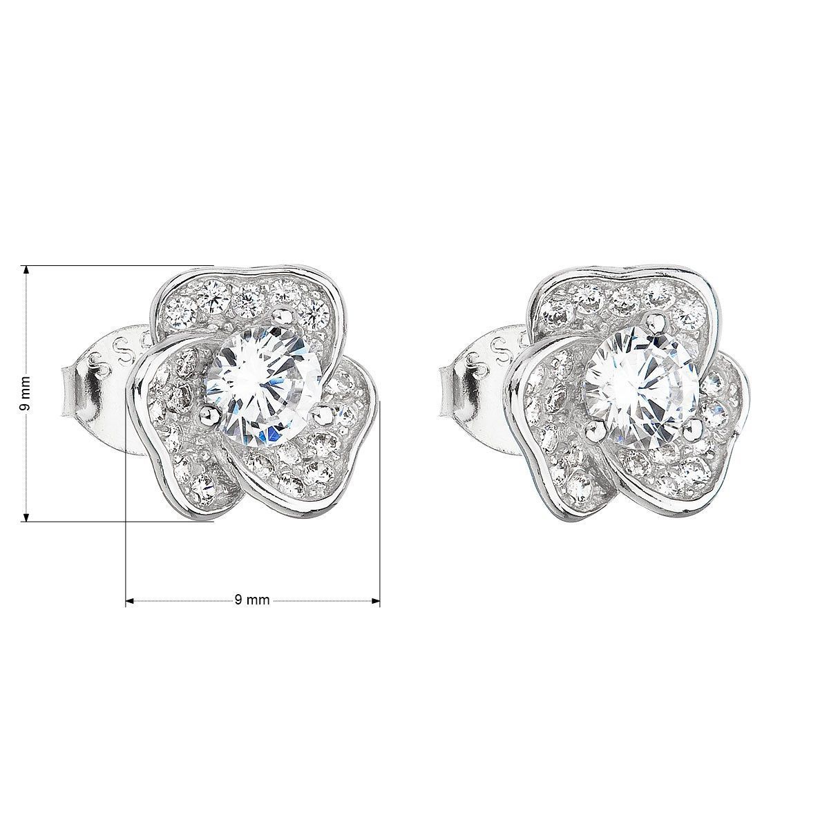 Stříbrné náušnice pecka se zirkonem bílá kytička 11145.1