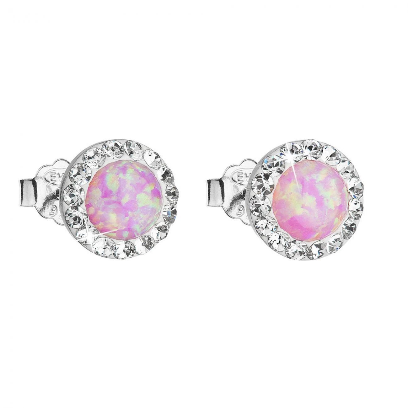 Stříbrné náušnice pecky se syntetickým opálem a Preciosa krystaly růžové kulaté 31217.1 lt.rose