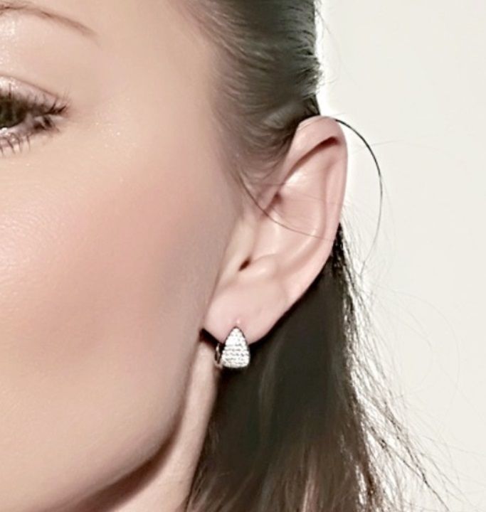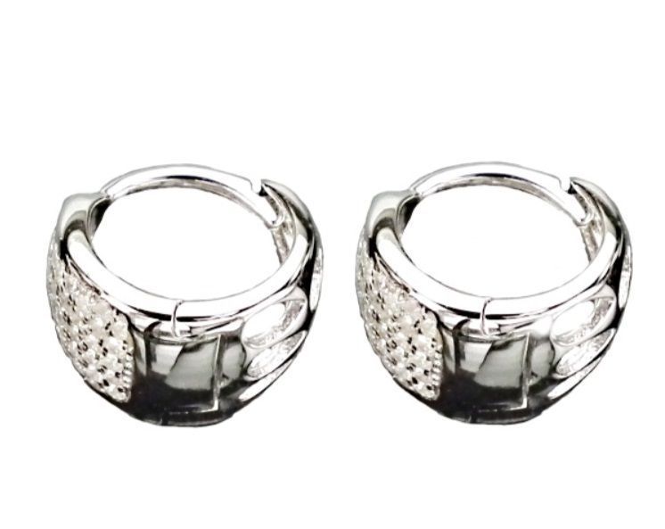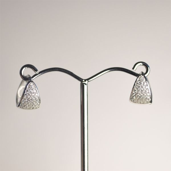 Stříbrné náušnice precizně zdobené drobnými zirkony čiré barvy.