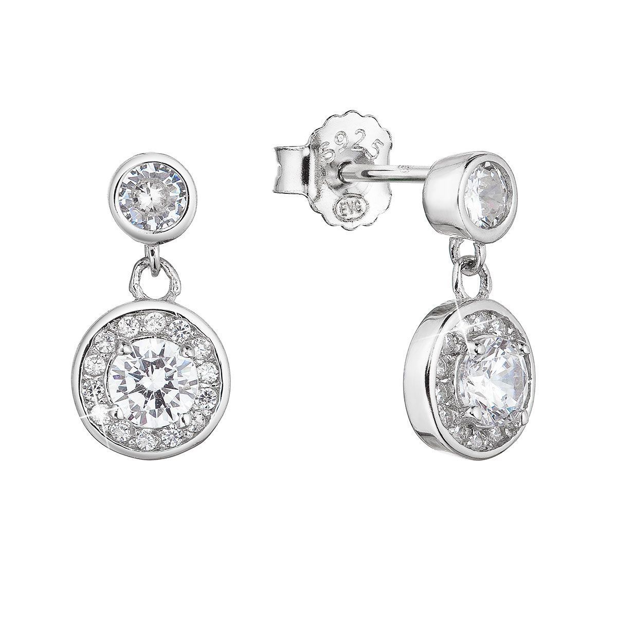 Stříbrné náušnice visací kulaté se zirkony 11429.1