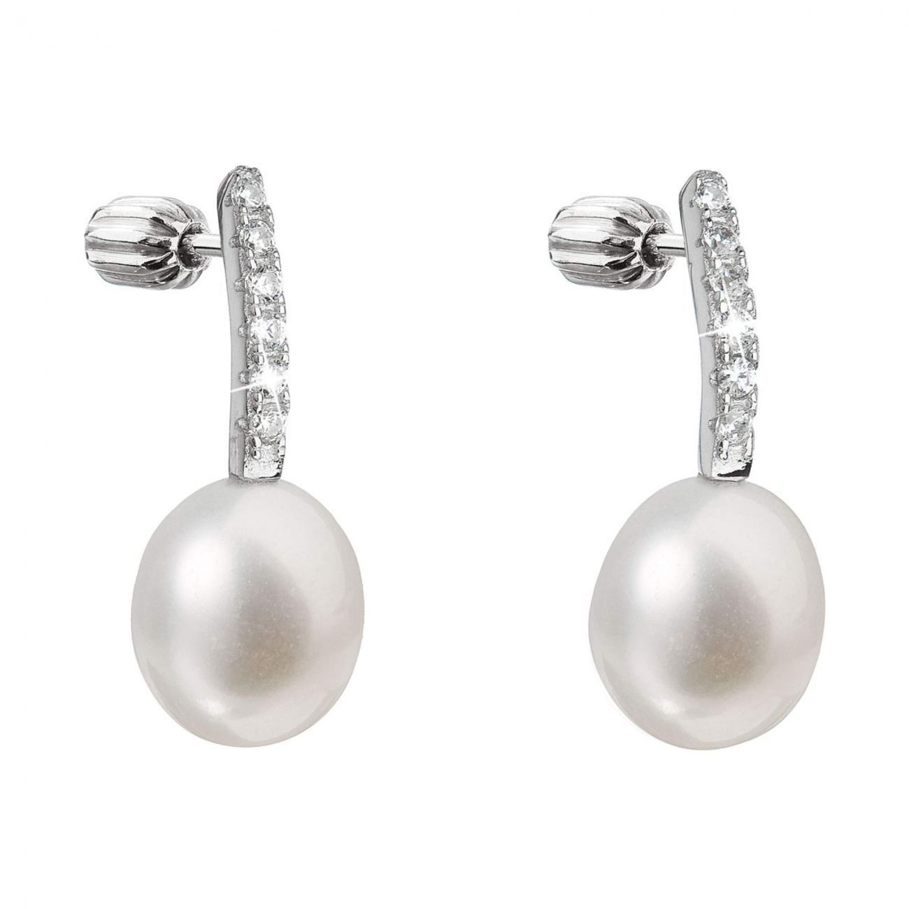 Stříbrné náušnice visací s bílou říční perlou 21034.1B