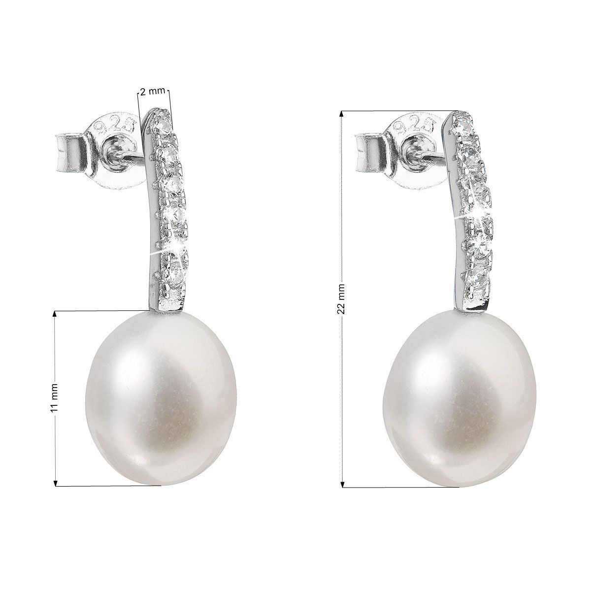 Parametry stříbrných visacích náušnic s bílou říční perlou 21034.1M