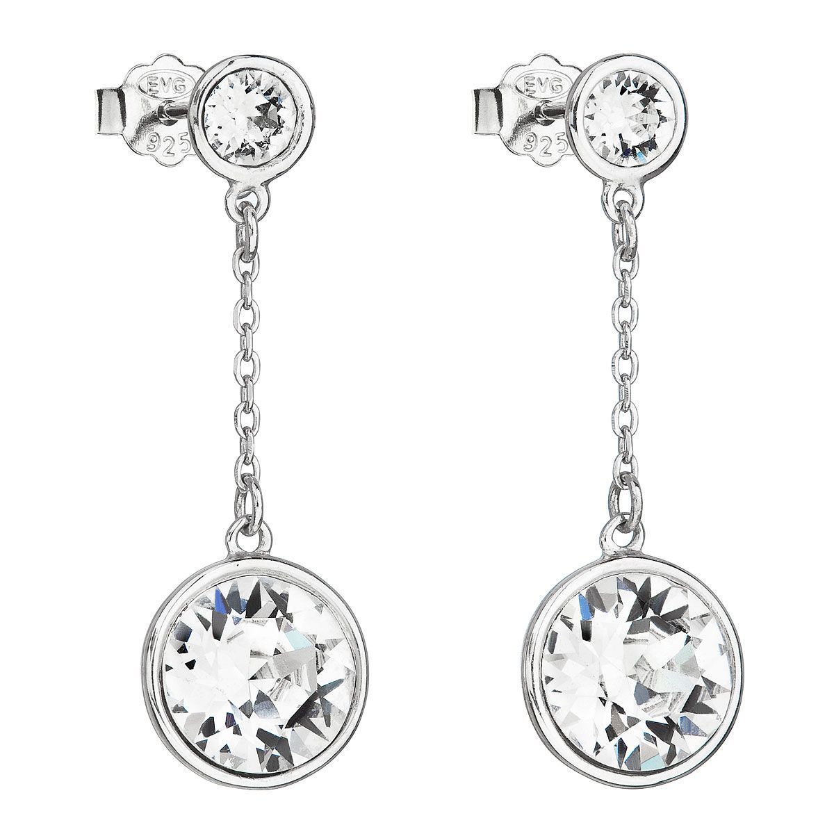 Stříbrné náušnice visací s krystaly Swarovski bílé kulaté 31269.1