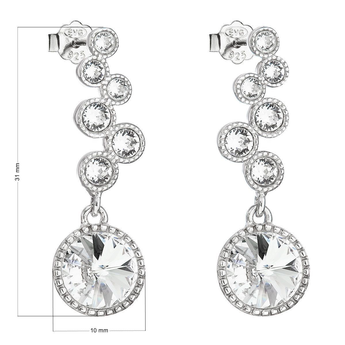 Stříbrné náušnice visací s krystaly Swarovski bílé kulaté 31265.1