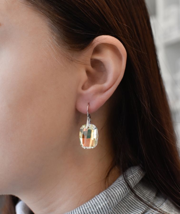 Buďte veselá a okouzlující jako letní duha! Obdélníkové náušnice blýskají svým AB Swarovski krystalem na všechny strany.