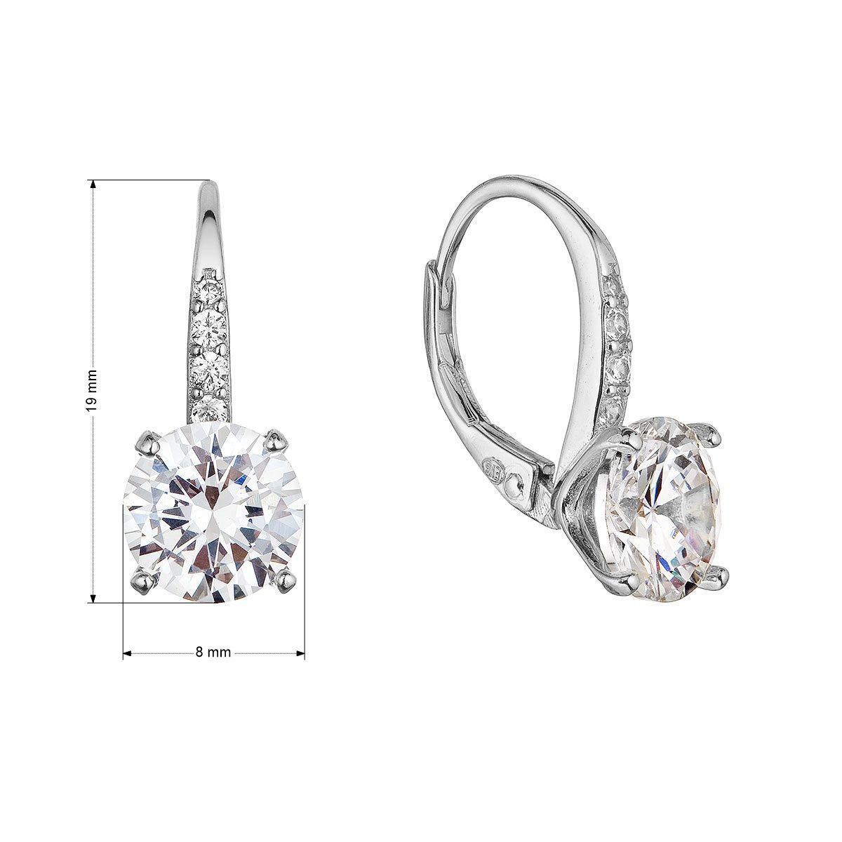 Stříbrné náušnice visací s velkým zirkonem bílé 11451.1