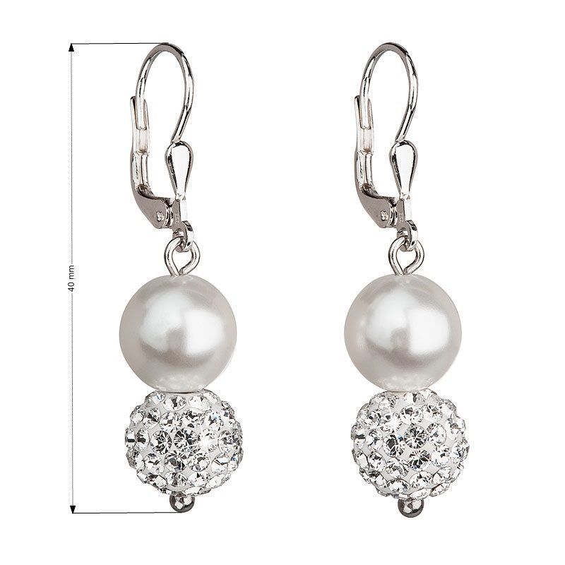 Stříbrné náušnice visací se syntetickými perlami a krystaly Swarovski bílé kulaté 31155.1
