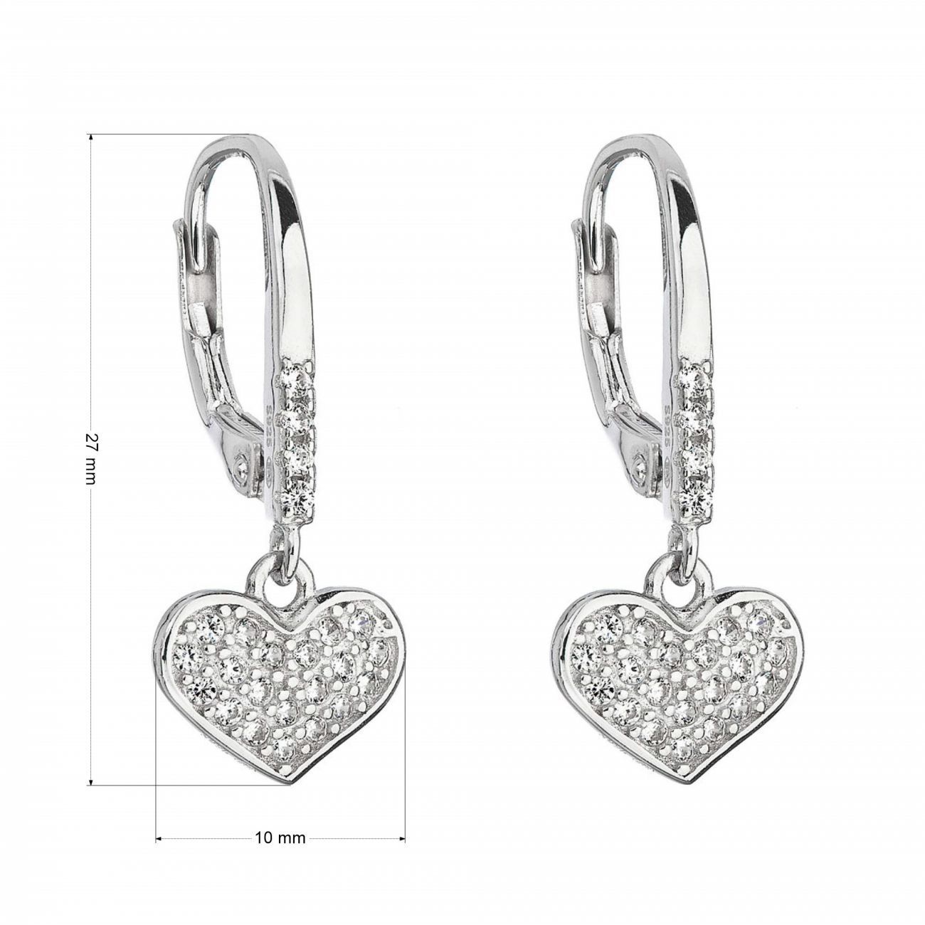 Stříbrné náušnice visací se zirkonem bílé srdce 11301.1