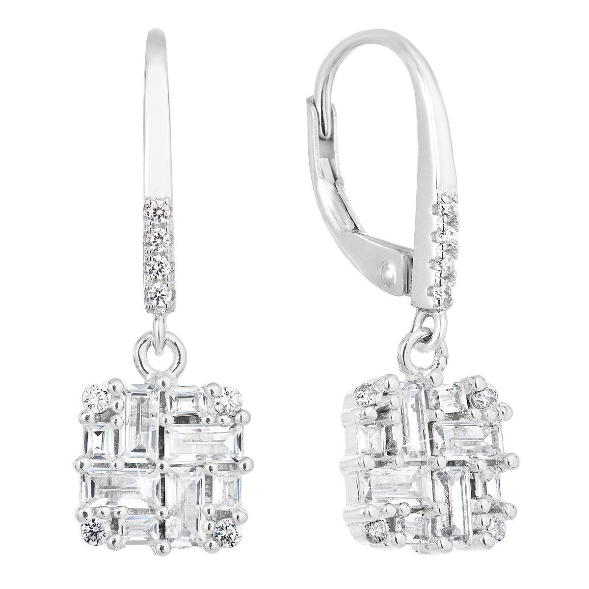 Stříbrné náušnice visací se zirkonem bílý kosočtverec 11297.1