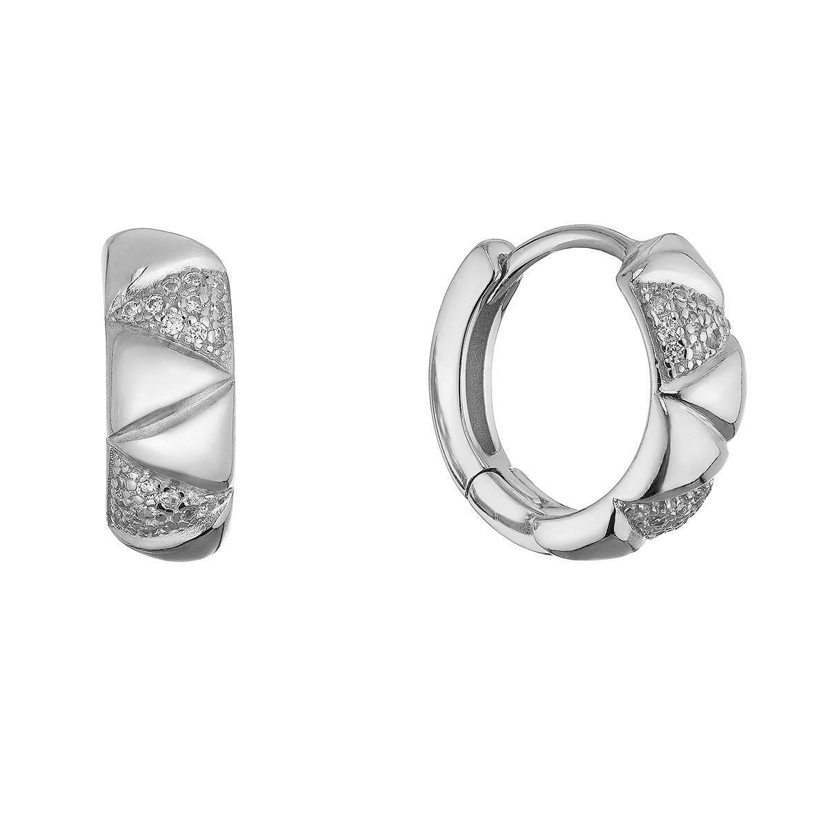 Náušnice jsou vyrobeny ze stříbra ryzosti 925/1000, jehož povrch je ošetřen vrstvou rhodia. Rhodium šperk chrání proti zčernání a zajistí jeho dlouhotrvající lesk. Přední část kruhů je ozdobena třpytivými zirkony. Zapínání náušnic na spolehlivý kroužek.