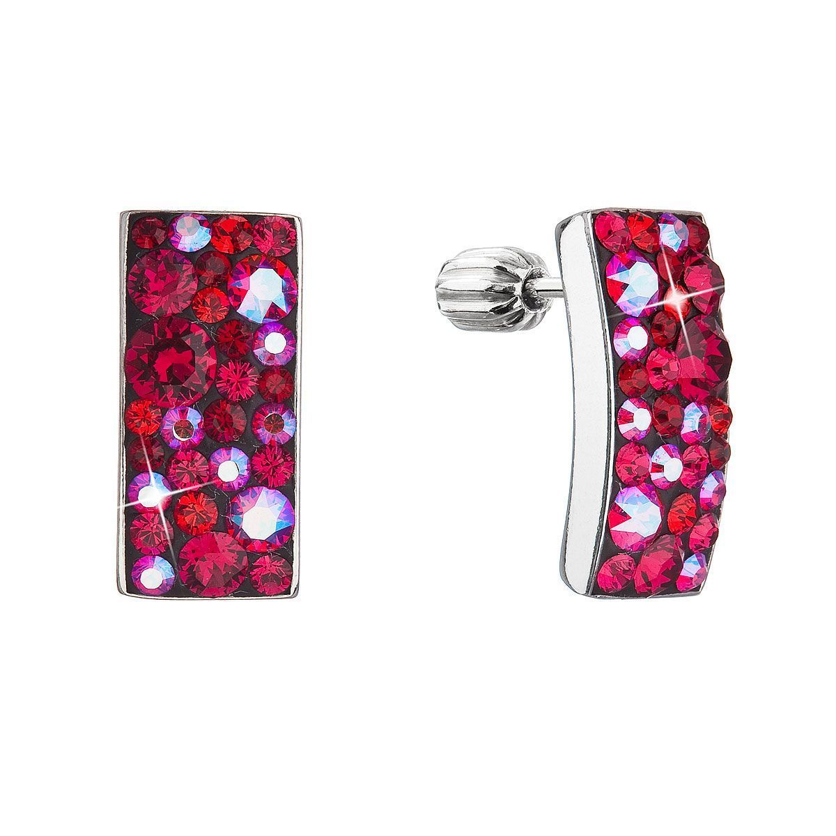 Stříbrné visací náušnice se Swarovski krystaly červený obdélník 31303.3 cherry