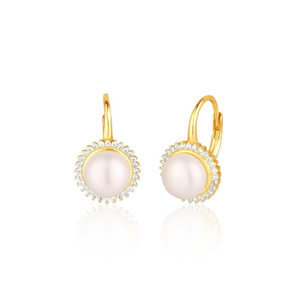 Stříbrné zlacené náušnice s perlou a zirkony