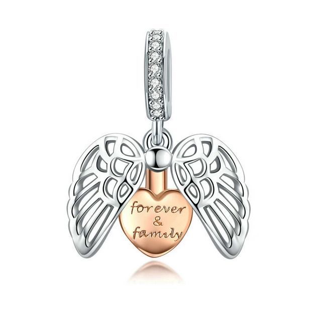 Stříbrný přívěsek - navlékací korálek s přívěskem ve tvaru srdíčka obepínajícího rozevírací andělská křídla.