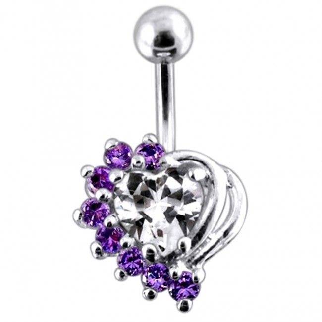 Piercingový šperk určený pro piercing pupíku. Piercing je zdobený ozdobou ve tvaru srdce.